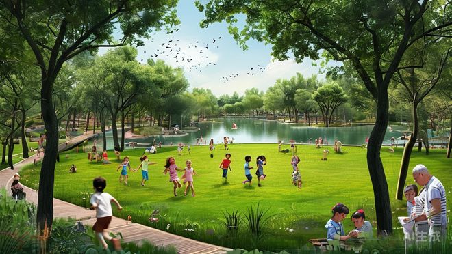 站在这样的环境里,我不禁思考:这哪里只是一个简单的居住空间?分明就是一个集休闲、娱乐、社交于一体的大型生态圈啊!在这里,人与自然的关系不再是割裂对立的,而是达到了前所未有的亲密接触状态。孩子们可以在草地上自由奔跑嬉戏;老人们在林荫道上散步聊天;年轻人则可以在湖边读书品茗……每一个年龄段的人都能找到属于自己的幸福角落。